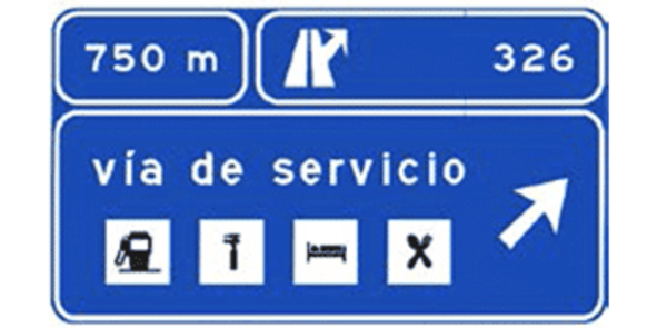 ¿Qué tipo de señales de tráfico hay en una vía de servicio?