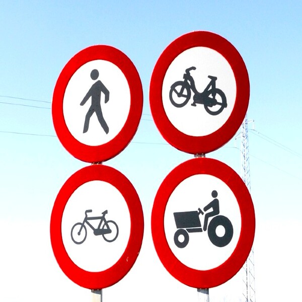 Antes del acceso desde una vía de servicio a una autopista, autovía o vía rápida, se deben señalizar las prohibiciones de paso a determinados vehículos (tractores, ciclomotores, etc.), que no puedan circular por las mismas.