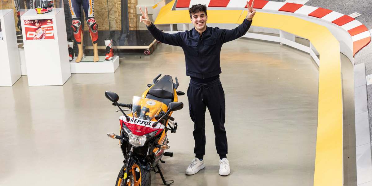 Inmerso en plena promoción de su última película, estos días Óscar Casas está afrontando innumerables entrevistas para explicar su experiencia interpretando a un piloto del Mundial de Motociclismo. Sin embargo, la última de ellas no se ha desarrollado como esperaba: tras un par de preguntas de su entrevistador, un repartidor ha interrumpido el encuentro para traer una enorme caja que escondía una sorpresa para el actor: la Honda CBR 125 R con los icónicos colores del equipo Repsol Honda.