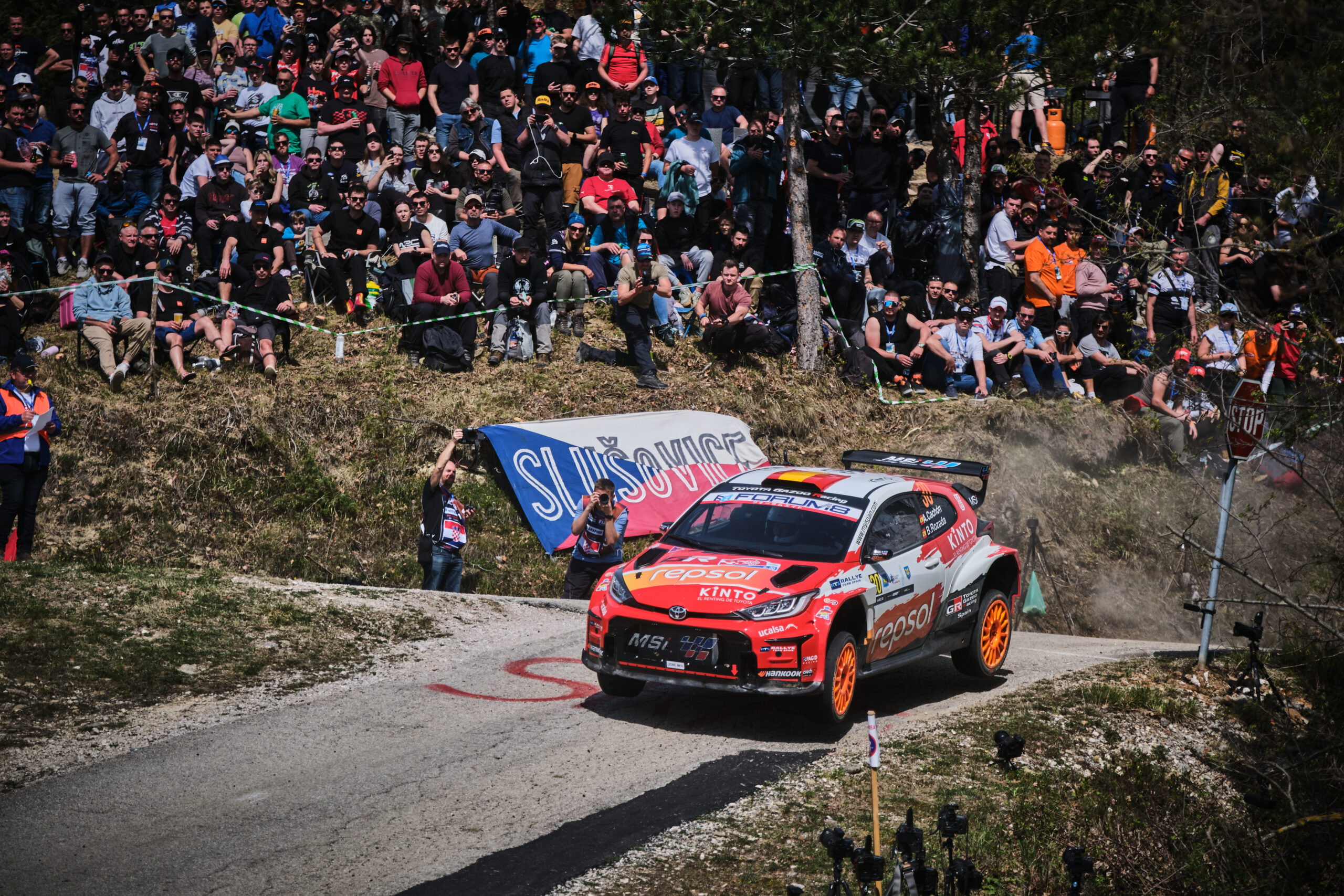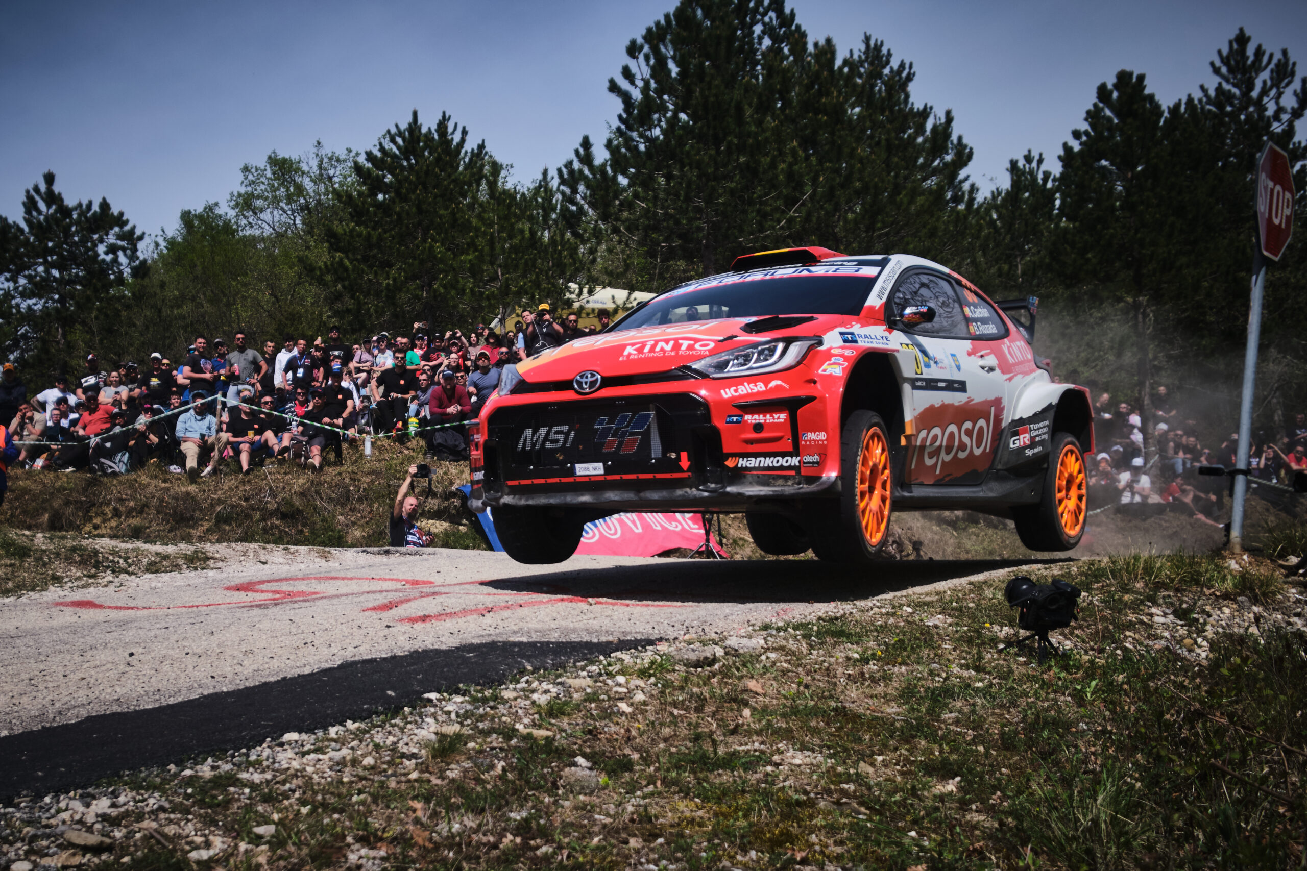 A bordo del Toyota GR Yaris Rally2, la dupla tuvo que adaptarse desde el primer momento a un asfalto impredecible, donde la suciedad acumulada en los tramos obligaba a gestionar al límite tanto el ritmo como la estrategia de neumáticos.