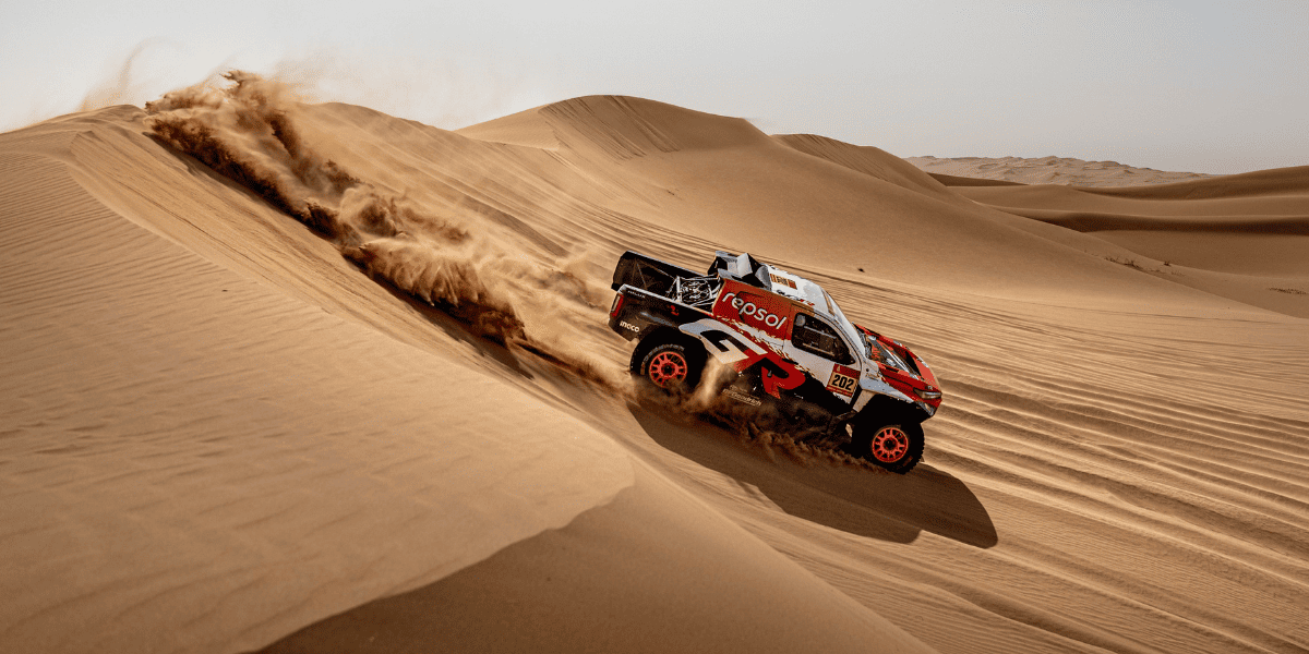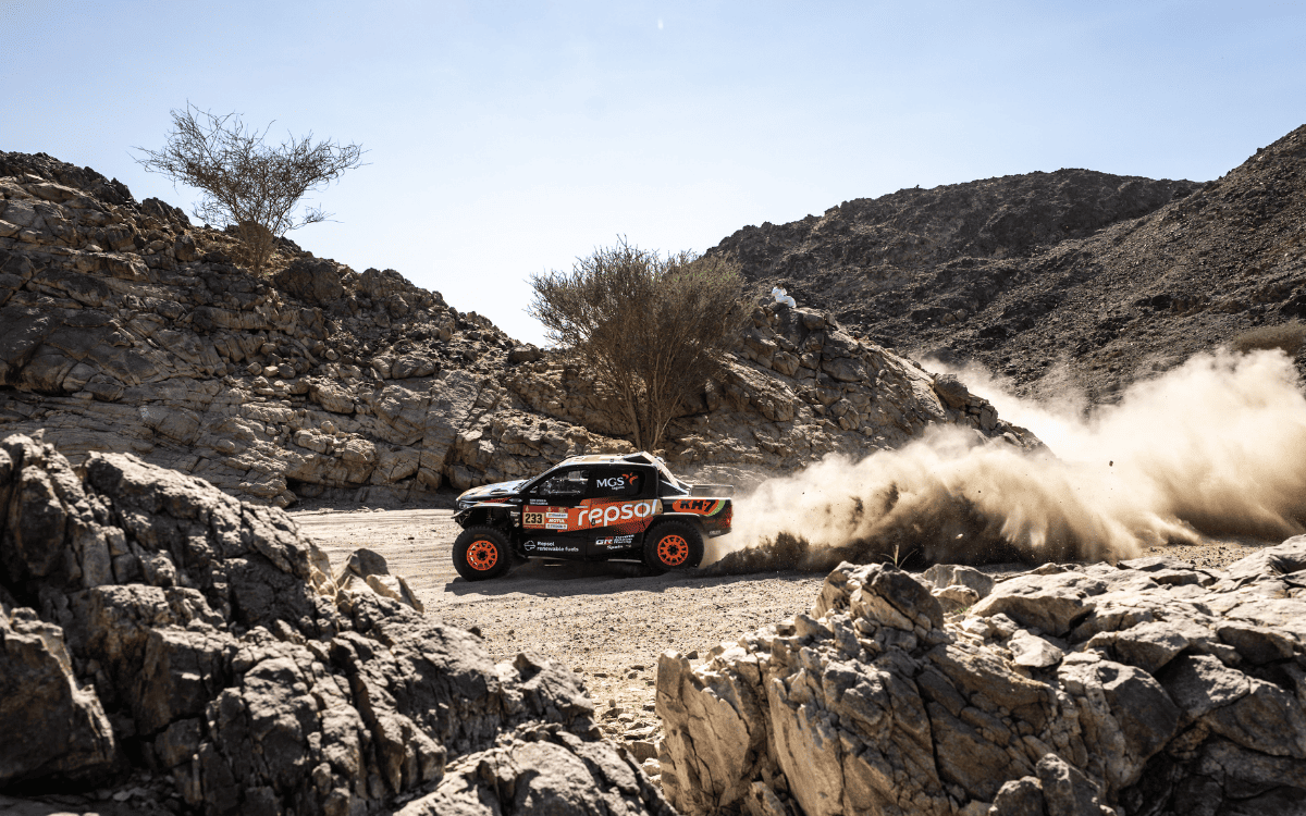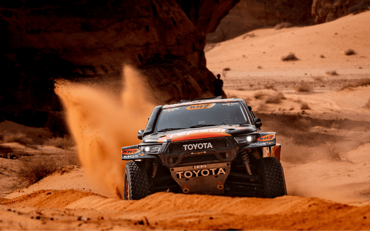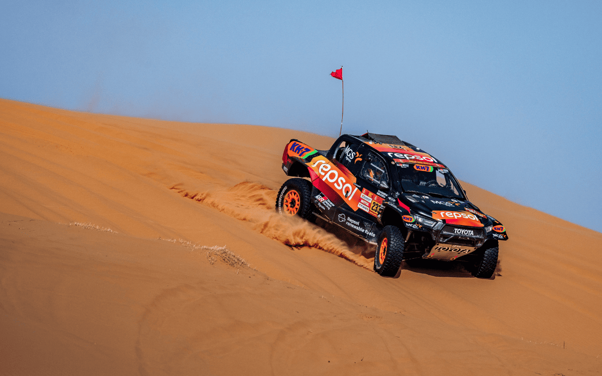 Durante el Rally Dakar los pilotos del equipo Toyota Gazoo Racing han sido protagonistas desde el inicio, manteniéndose siempre en la lucha pese a la extrema y exigente dureza de la competición. Tras una etapa prólogo intensa, los tres pilotos del equipo, Toby Price, Henk Lategan y Seth Quintero empezaron con buenas sensaciones quedando agrupados a pocos minutos del líder. El equipo dio un paso adelante en la segunda etapa logrando un buen resultado grupal. El piloto estadounidense, Seth Quintero logró un destacado primer puesto, mientras que Henk Lategan y Toby Price entraron dentro del Top 5, evidenciando el elevado nivel competitivo de los Toyota desde el inicio del rally. La tercera etapa supuso uno de los primeros grandes retos, marcada por las piedras y los pinchazos, pero el equipo logró minimizar los daños y conservas sus posibilidades a la general. La respuesta fue clara en la cuarta jornada, la primera etapa maratón, donde el sudafricano Henk Lategan estuvo constante para conseguir la victoria y posicionarse como líder del Dakar, sumando el segundo primer puesto para los combustibles renovables de Repsol.