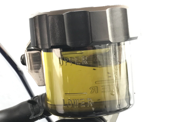 En esos dos puntos también es posible verificar el nivel del líquido. Si está bajo puede indicar que las pastillas están gastadas y necesitan ser sustituidas. En este caso, primero habrá que cambiarlas y después comprobar si el líquido ha recuperado su nivel. Si rellenamos el líquido antes de sustituir las pastillas por unas nuevas, es muy probable que, al cambiarlas, la bomba o el depósito rebosen, y el líquido se derrame por la moto.