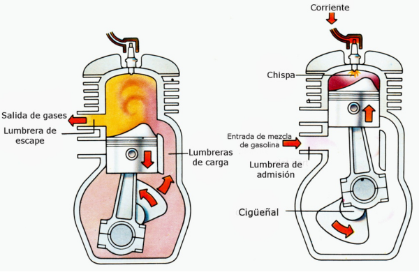 ¿Cuáles son las principales diferencias entre un motor de cuatro tiempos y uno de dos?