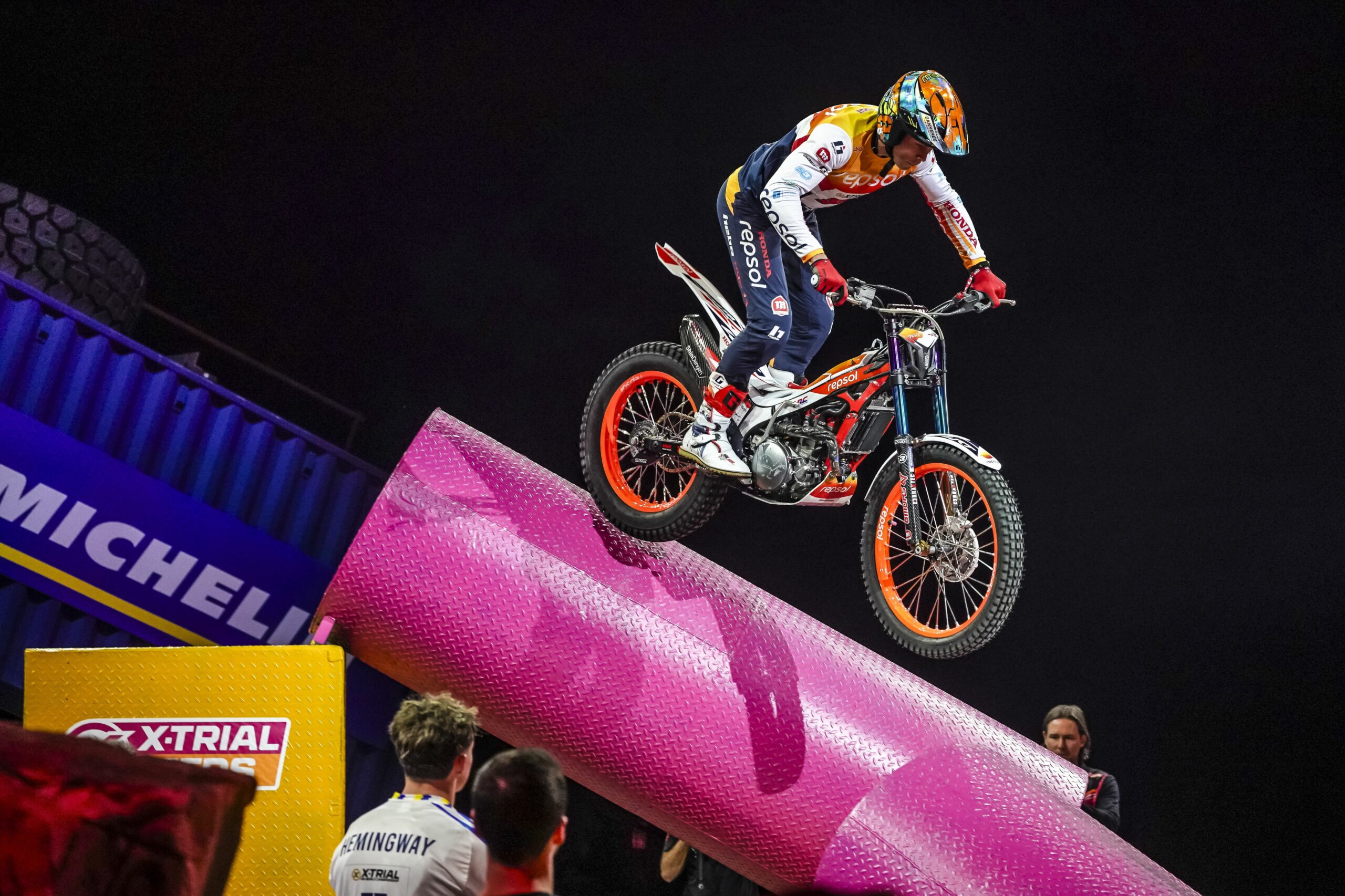 La Q1 dejó dos actuaciones muy diferentes en el Repsol Honda. Gabriel Marcelli comenzó con buenas sensaciones, superando la primera sección con solo un punto, pero fue acumulando penalizaciones tras quedarse encallado en la segunda y caer en una tercera zona que puso en apuros a todos los pilotos; aun así, se rehízo con una gran pasada por el black mushroom y completó con estilo la penúltima sección, aunque la falta de tiempo le impidió afrontar la última, cerrando la Q1 con 17 puntos. Toni Bou, por su parte, protagonizó una Q1 de altísimo nivel, siendo el único piloto capaz de superar la tercera sección y marcando diferencias tanto por velocidad como por precisión; pese a penalizar con un cinco en la cuarta zona, su solidez en el tramo final le permitió terminar segundo con 12 puntos, a solo cuatro del líder y cinco por delante de Marcelli.