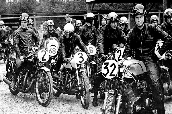 La industria británica estaba en plena ebullición y fueron los años dorados para marcas como Triumph, Norton, BSA, Royal Enfield, Vincent o Matchless. Incluso surgieron firmas mestizas como Triton, Norvin, Tribsa, etc., que mezclaban motores de unas con chasis de otras. No eran motos muy caras, y se reparaban y preparaban en la parte de atrás de las casas o en los garajes particulares. Además de aligerarlas, lo más habitual era acoplarles unos semimanillares abrazados a las barras de la horquilla y unos estribos retrasados. Y, siempre pensando en que fueran veloces al máximo, utilizaban neumáticos de carretera.