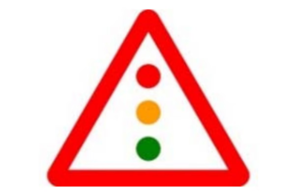 Semáforo: si antes de cruzar un paso a nivel existe un semáforo, sobre las señales P-7 o P-8 y, por tanto, a 200 m, habrá colocada una señal P-3. Esta es una señal triangular con los bordes en rojo y el fondo blanco, que en su interior incluye el pictograma de un semáforo.