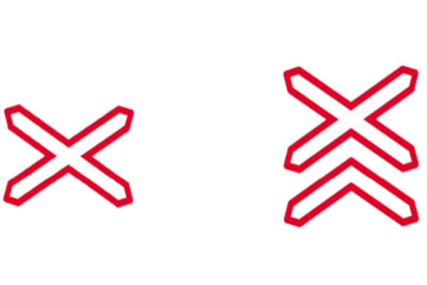 Una o varias vías: en los pasos a nivel sin barrera se advierte de cuántas vías se cruzan en el mismo paso. Si hay una sola vía se utiliza la señal P-11, que es una “X” con el borde rojo y el fondo blanco. Esta señal es conocida como “la cruz de San Andrés”. Si hay dos vías se utiliza la señal P-11a, que añade una “V” invertida en la parte inferior.