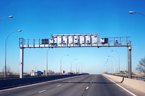 - De pórtico: situados en estructuras elevadas como pórticos o puente, por lo que los vehículos pasan por debajo. Puede haber más de un cinemómetro en el mismo pórtico con la intención de controlar varios carriles.