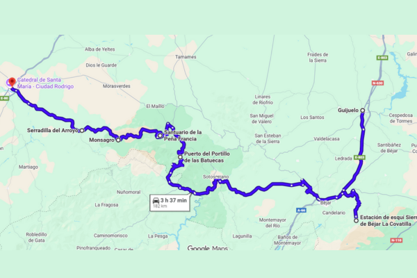1. Guijuelo – La Covatilla – Parque natural de las Batuecas-Sierra de Francia – Ciudad Rodrigo (3 h 37 min – 182 km)